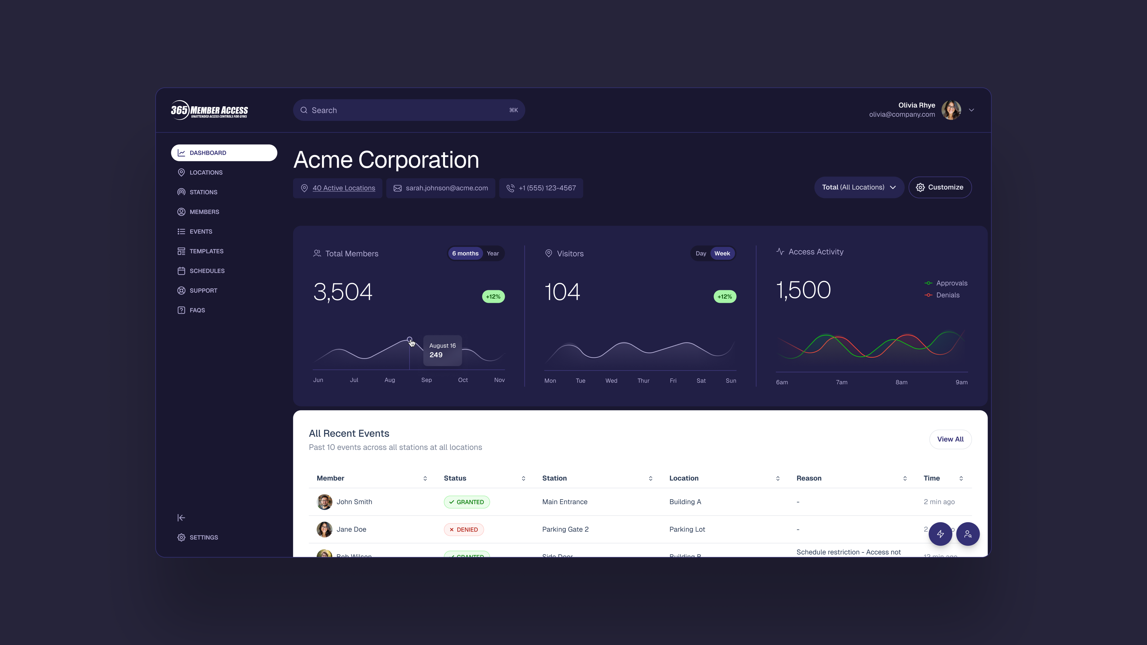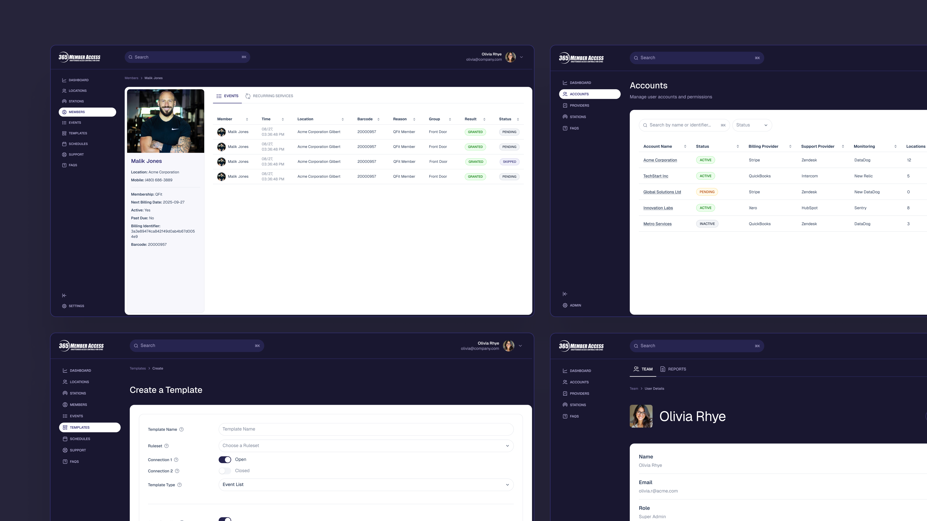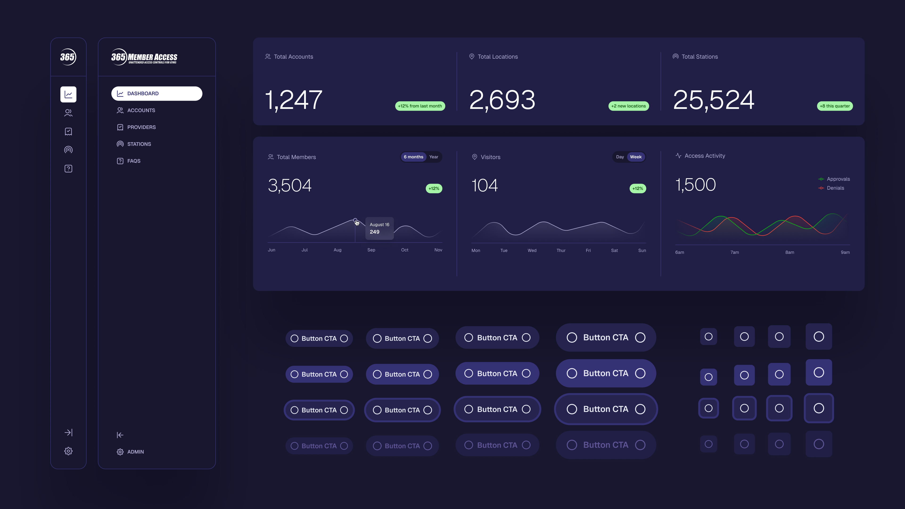365's product was already doing the hard part — capturing rich data across every door, kiosk, and amenity in a club. But the people who needed that data most, the gym administrators running day-to-day operations, weren't getting much out of it. Dashboards were dense. Workflows were buried. Common tasks took longer than they should.